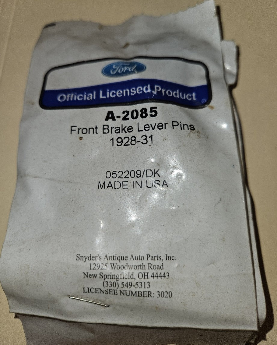 Set of pins that hold the lever the brake rods connect to at the front of the shaft